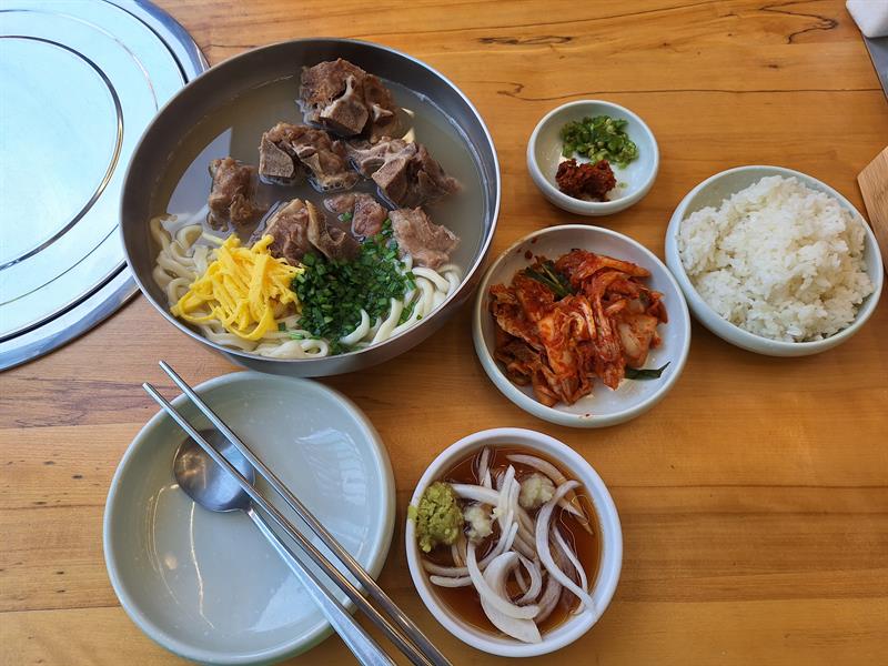 맑은 고기 국물에 칼국수... 고기는 목뼈, 맑은 곰탕국물 같은 칼국수 괜춘한 집이에여