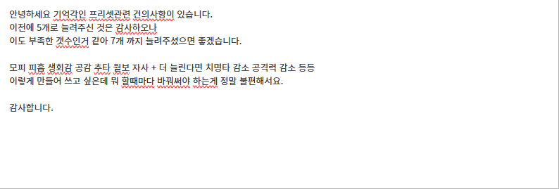 기억각인 프리셋 건의 드립니다~