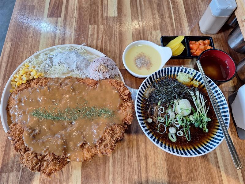 왕돈까스 모밀 세트를 시켜보았어여...