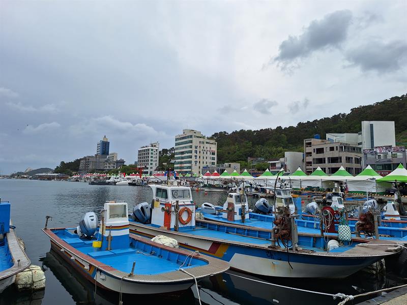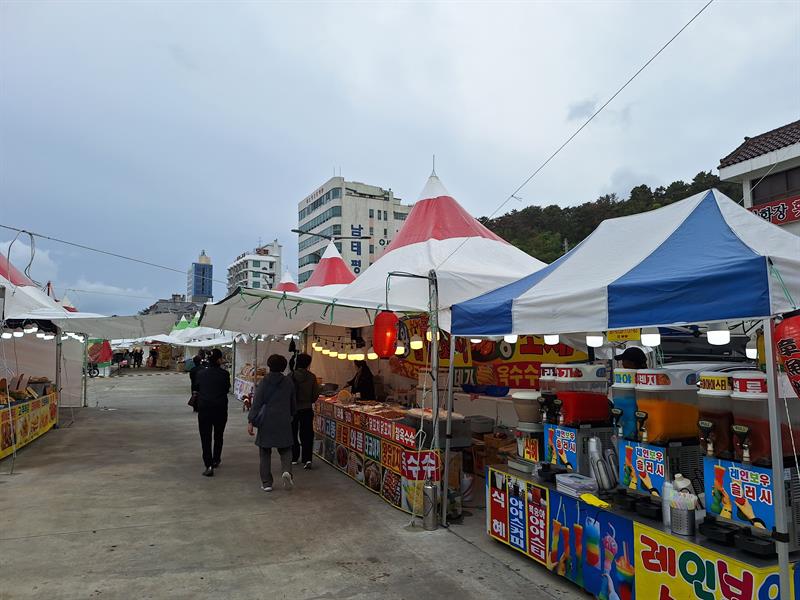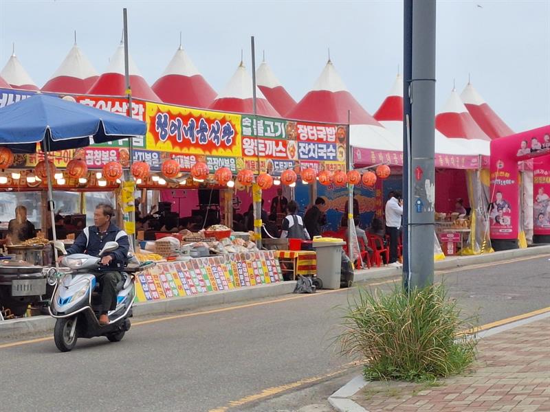 항구 길거리는 먹거리로 가득, 쿵짝쿵짝 노래는 울려퍼진다 ㅎㅎ