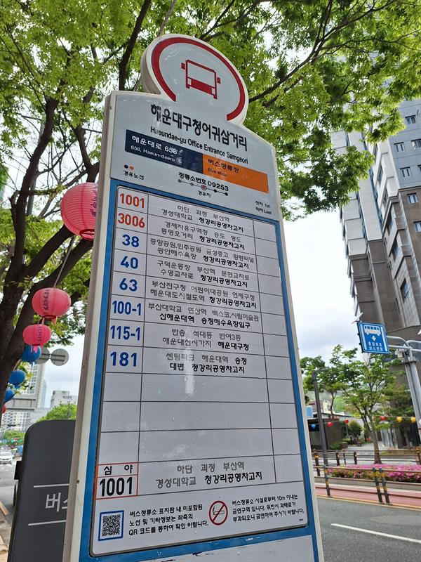 후훗! 미리가보장 해운대 구청어귀 삼거리 정류장에서 181번 버스를 탄다