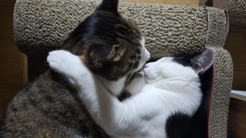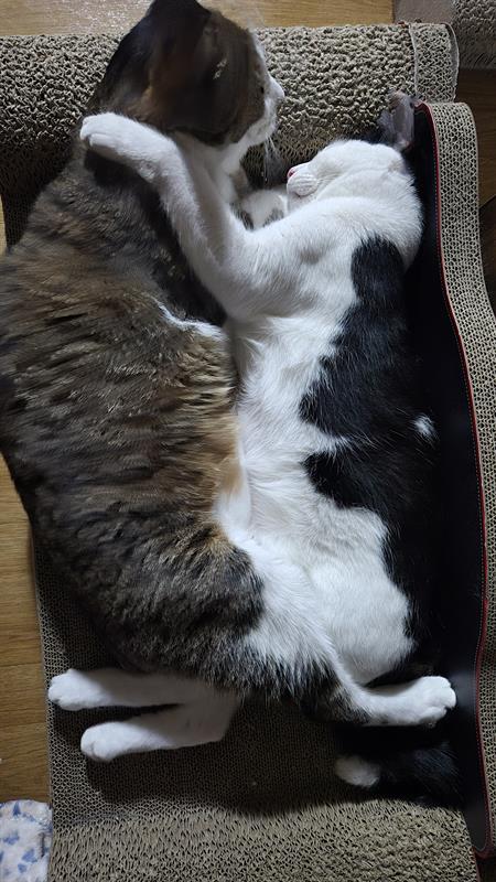 고양이 습성에는 싸우면서 정든다는 말이 맞지는 않지만 우리 애들한테는 얻어걸린 식으로 맞아들었나 봐요^^
