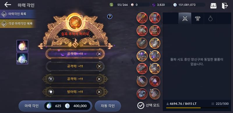 강제돌파랑 장신구마력각인은 조작질심하게 해논거 같네요 요즘은 한두븐해보고 안되면 걍겜끄고 안함요