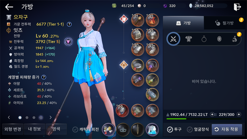 그리고 60렙윈드워커받고 극그루닐만 옴겼는데 무기는 극리베만들려면 좀 걸리는데