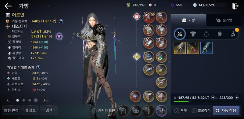 1. 케릭을 각성했으니 장비각성을 진행해도 됨(투력껑충)