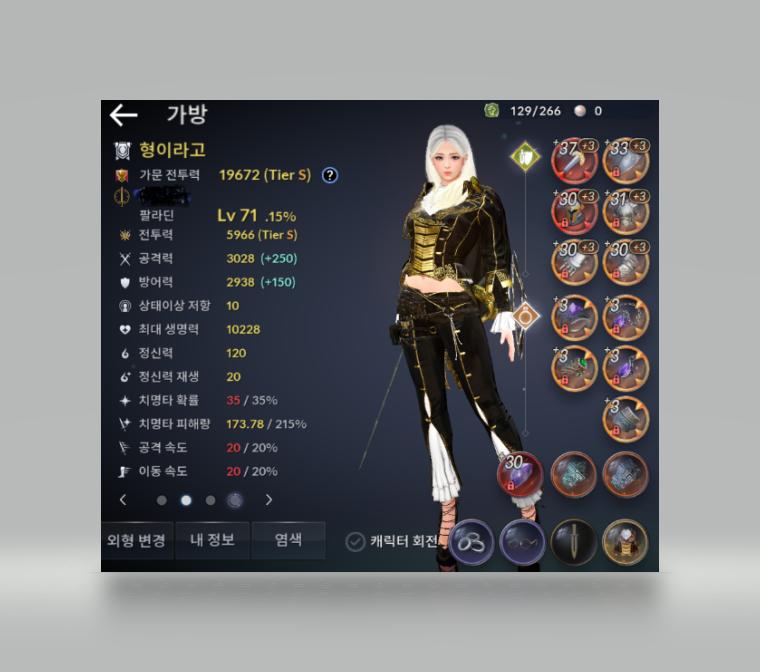 투력은 5966이며, 아알/아히브계열로 육성중입니다.