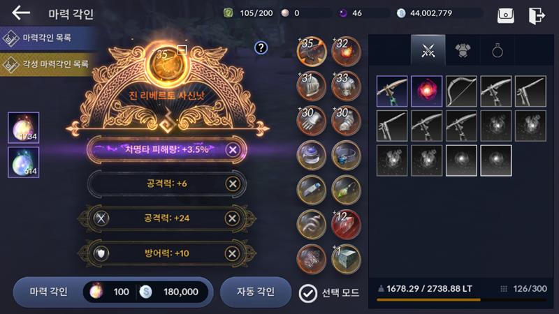 4. 마력각인 돈이랑 사과같이 생긴게 부족해서 한번씩만 돌렸는데 바꿔야할거, 목표치 말해주세요.