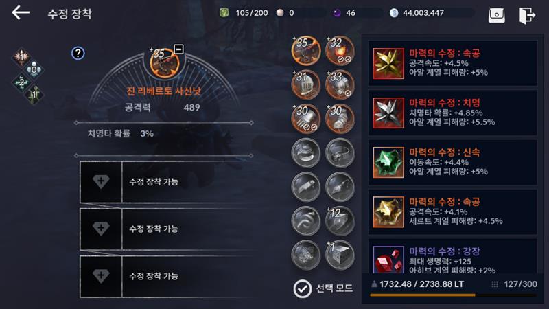 5. 심연수정이 너무 안나오는데 저기 있는 두개라도 낄까요?