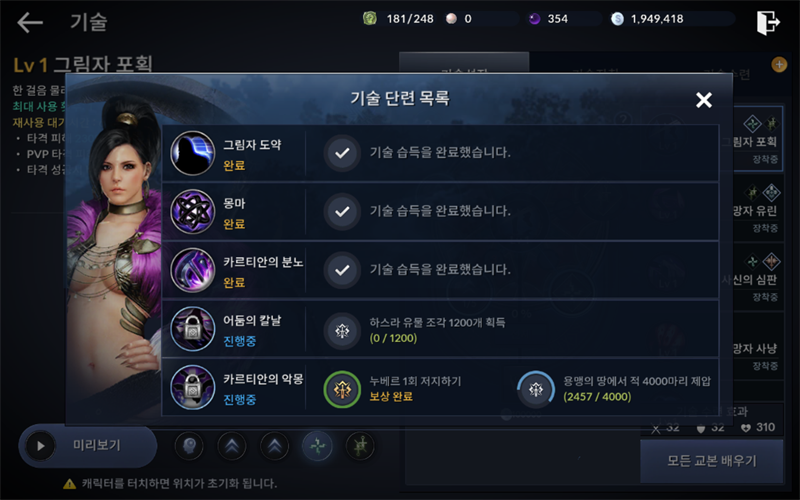 어제 소서러->리퍼로 전직했습니다. 기술 관련 미션 중에 ??