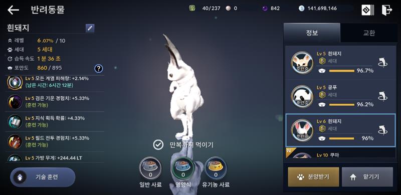 다만, 공격력이나 무게등 약간 부실하지만 밤샘자사용으로 사막여우같지만 이름이 흰돼지인 녀석은 쟁여두시는것이 좋겠습니다. 준수한 옵션의 5세대 펫이 나올때까지요..