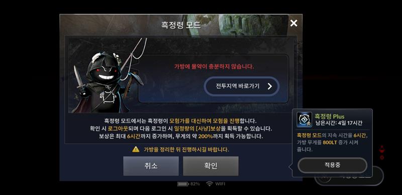 흑정령의 모험때 물약이 부족하다면서 진행이 안되는 현상이 있는데 어떻게 해야 이런문구가 안뜨나요