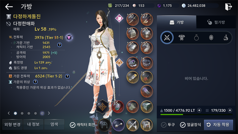 60레벨케릭에 장비 받아서 키우다가 이번에 매화 나와서 갈아타고