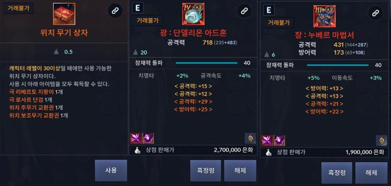 무기교환권으로 동일 옵션(마력각인 그대로)인 아크매지션 무기로 교환가능한가요?(혼 -> 지팡이 / 마법서 -> 단검)
