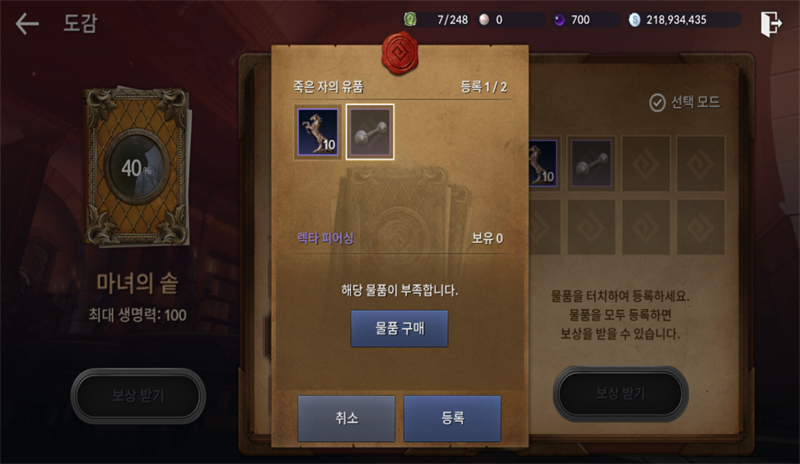 사진에서 보면 물품 구매 클릭하면 라라의 특별상자로 넘어가는데 찾아봐도 해당 물품을 구할 수 없습니다...