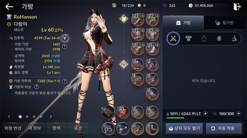 일단 중요한 게 은화 모우셔서 악세 각성부터 해주면 될듯 합니다