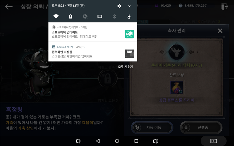 성장의뢰 영지성장서 가축관리 클리어가 안되고 있는데 저만그런건가여?