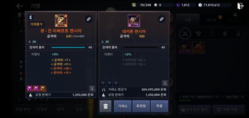 저걸로 교체해야 할지... 각성하면 공200짜리인데
