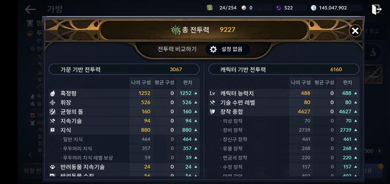 첨부된 그림 아래에 [전투력 비교하기] 설정이 있어요.