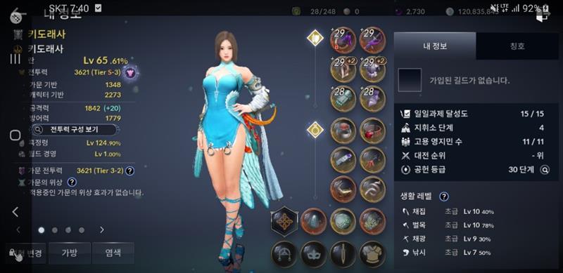 레벨은 65인데 투력은 아직 3600밖에안되네요