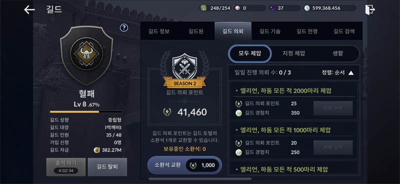 길드의뢰가 왜안되냐고요.... 할려고 드가니까 누를수를 없네요