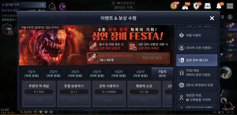 심연장비페스타 에러 개오바