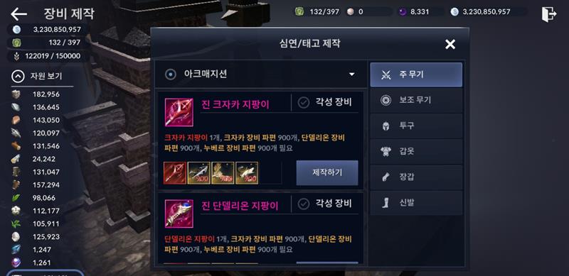 영지 공방에서 심연장비 제작메뉴에서 악세사리 메뉴가