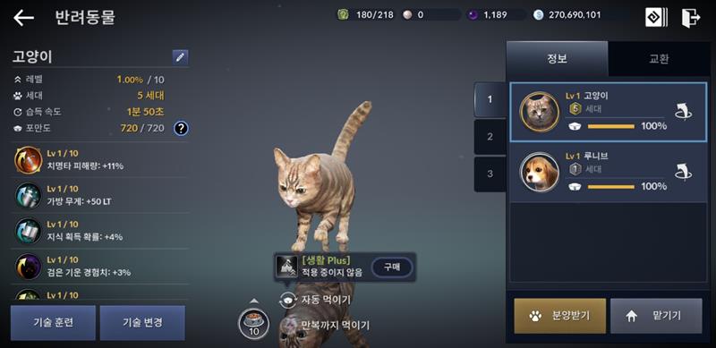 펫 레벨은 전투의 흔적 획득하면서 쌓이는 경험치로 오릅니다.