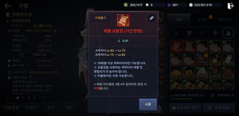 요전에 받은 레벨교환권을 사용해서 캐릭이전을 하려는데 교환권 사용이 안되드라구요. 본캐에서 부캐로 이전하려는데 왜 일시적으로 사용이 안된다는거죠? 사용하라고 준거 아닌가요?