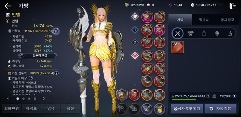 투력 저랑 비슷하신데 태고템풀셋하시고 지식작 보스작 다 하시면 됨