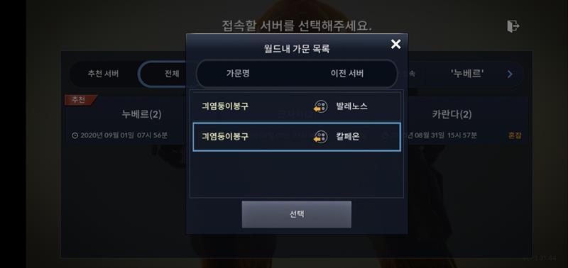 다름이 아니라 게임에 들어갈때 자뀨 서버선택창이