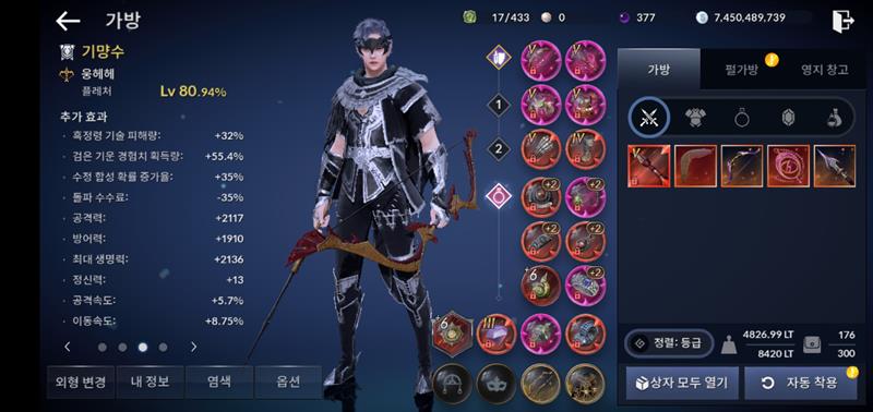 한계 돌파된 장비로 무기 방어구 제작 질문