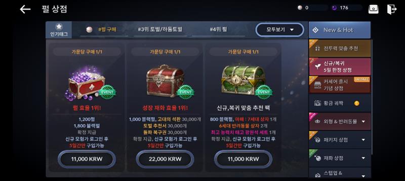 블랙펄은 월드경영이나 이벤트 같은걸로 구할 수 있지만 흰펄은 현질 아니면 구할 수 없습니다.