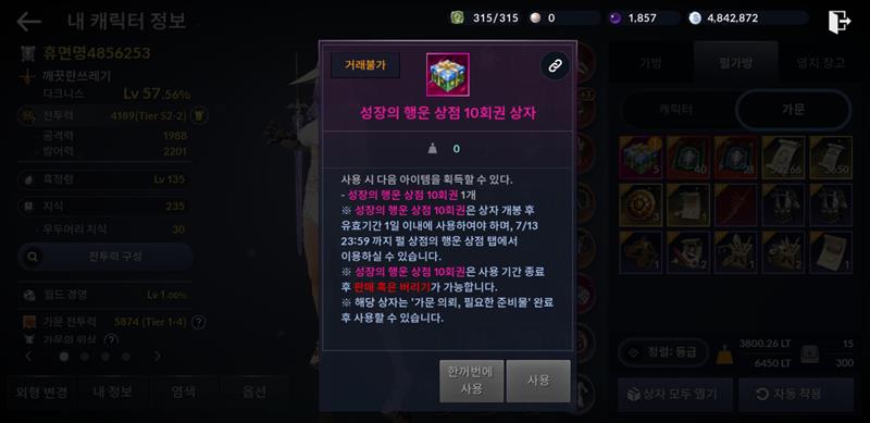 -> 레벨은 상관이 없고 메인의뢰 메디아남부 9장 왕위의정당성을 깨면 가문의뢰, 필요한 준비물 퀘스트가 생깁니다. 그 퀘스트를 완료하시면 행운 상점 10회권 상자를 사