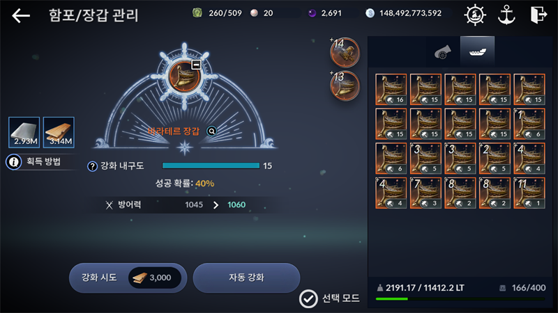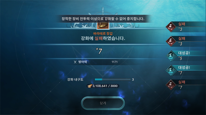 함선 함포 강화 시 장착한 장비전투력 이상으로 강화할수 없다는게 무슨 말인가요???