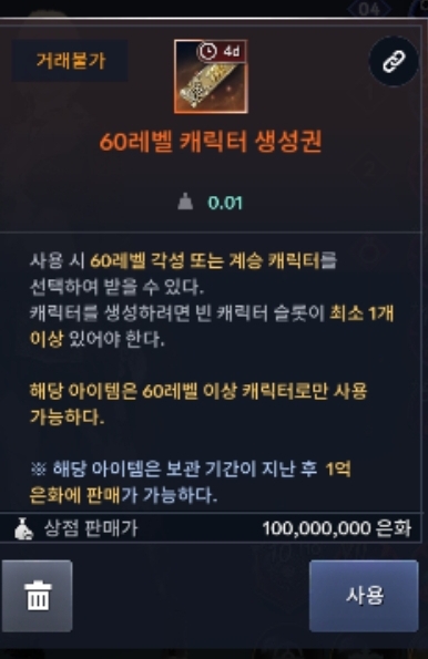 60레벨 캐릭생성권으로 이클립스는 안되네요?