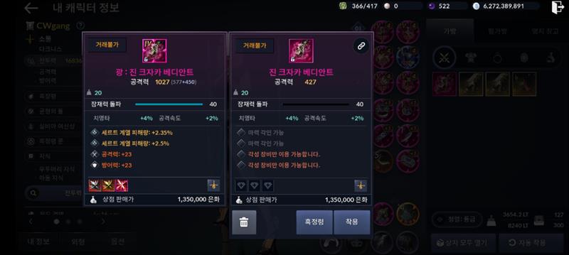추후에 강화 시 흑결정이 부족 하시기 때문에 엘리언 장비로 혼돈 가시는 걸 추천 드립니다( 하둠 장비 혼돈 제작시 흑결정 3배 사용됨)