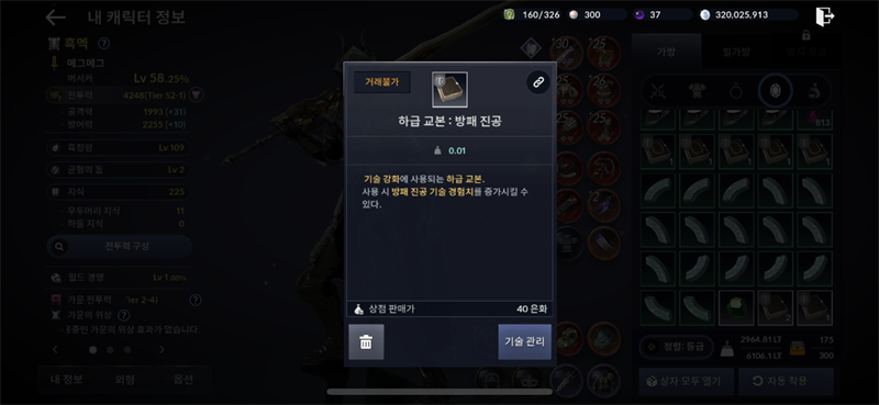 이 게임에 무지한 상태로 막 시작하여 갓 59를 찍었는데 문득 보니 스킬레벨이 전부 1이고 기술교본은 다른클래스만 계속 나오고 있더군요;; (방패관련 스킬 등 몇개)