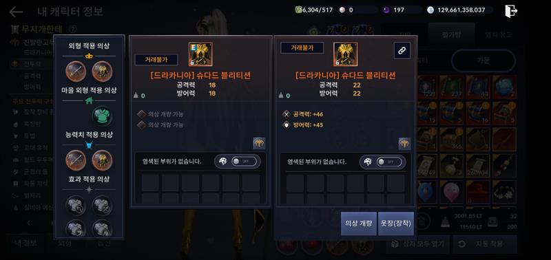 왼쪽 의상을 빼고 오른쪽 의상을 장착 할려는데 방법좀 부탁 드려요