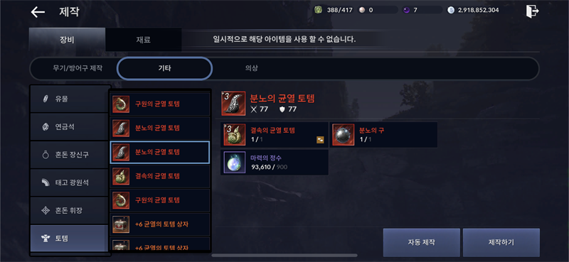 아니 제작좀 할려는데 지꾸 이런식으로 뭐 아이템을 사용할 수 없다 재료가 선택되지 않았다 라고 뜨는데 이거 대체 왜이러는건가요…?