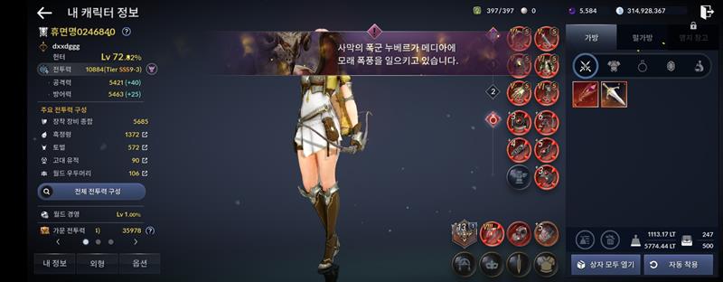 본캐릭에서 부캐들 가방을 볼 수는 없나요?