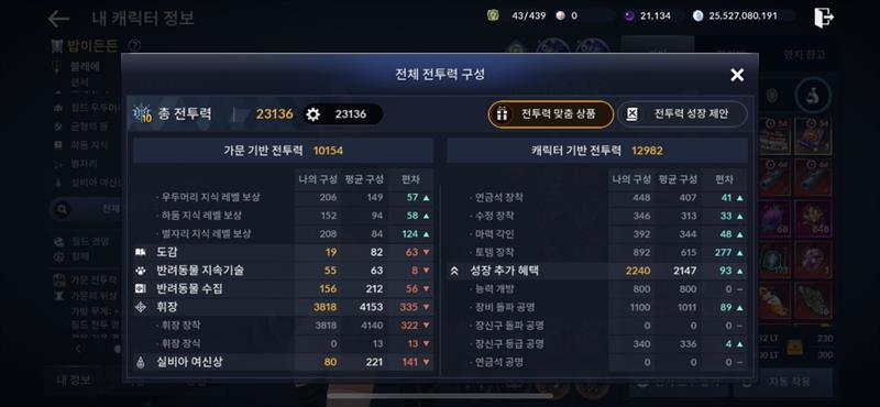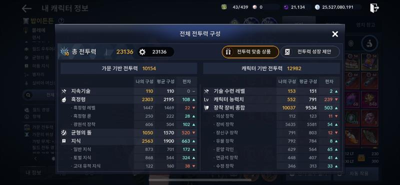우선순위라면 전투력비교에서 평균보다 낮을걸 우선하시면 될것 같구요 재료가 준비되는 것부터 하시면 됩니다. 베이스는 평소에 꾸준히 해야 하는거고 투력상승폭이 큰건 - 장신구 5강 해서 혼돈제작, - 장비에 차원의수정 및 마력각인 - 태고유물 강화 및 문양각인 - 혼돈연금석제작 및 강화 - 휘장강화