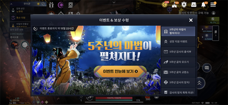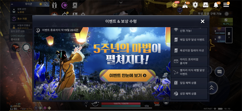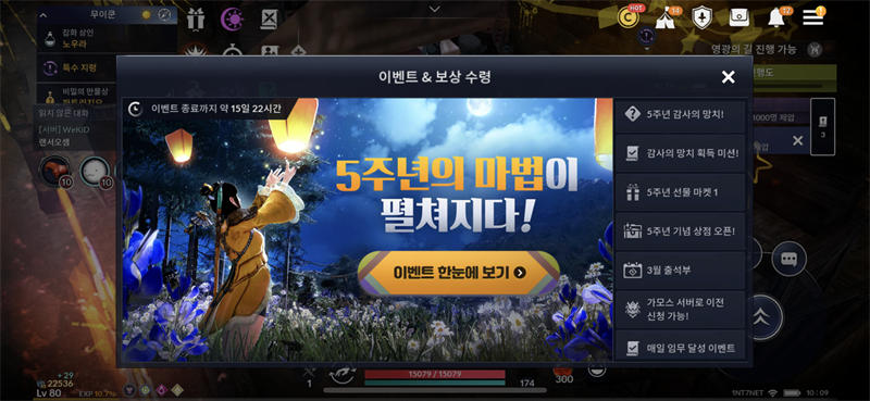 첨부화면과 같이 5주년 혼돈장비를 받는 이벤트 베너가 노출되지 않습니다.