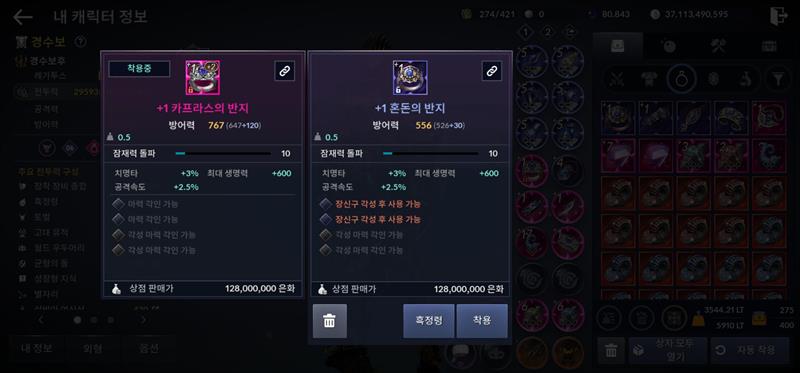 저라면, 우선 +1 태고 반지는 강화 스탑 맟 착용만 하고