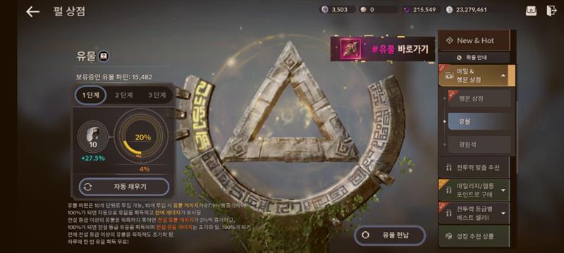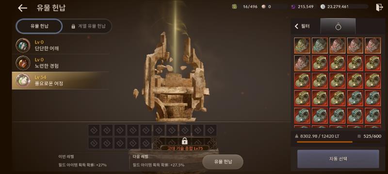 몇 단계 유물 교환해서 헌납하면 되는 건가요?