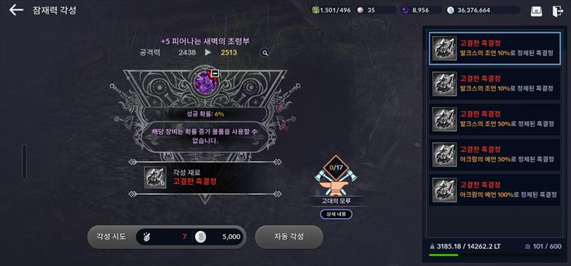 현재 5강인 무기를 6강으로 순수한 마력의 블랙스톤으로 변경하려고 하는데