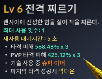 패치 전에는 전격찌르기 기술을 사용하다 회피기를 써도 딜이 3개가 다 들어갔습니다.