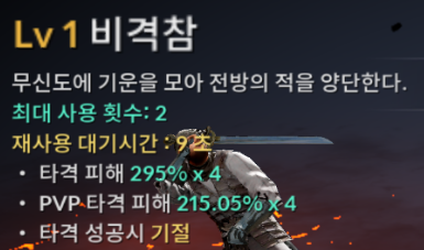 무극의 비격참과 횡참 역시 딜이 반토막났습니다. (정확한 수치를 보기 위해 비격참은 세르트로 설정했습니다.)