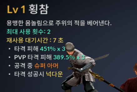 예를 들면, 전격찌르기 기술은 425.12% x3 인데요,