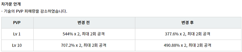 과거 변경 후 스킬 10렙 대미지가 변경 전 1렙 대미지보다 못한 파격적인 너프도 있었고