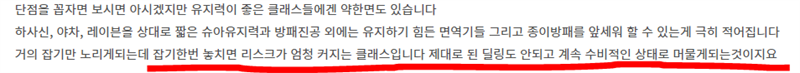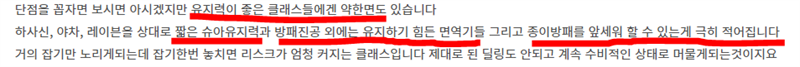 이렇게 방패 종이짝으로 만들거면 차라리 모션 긴 주력 스킬들에 슈아라도 하나 옮겨줘서 유지력싸움이라도 되게 해주셈